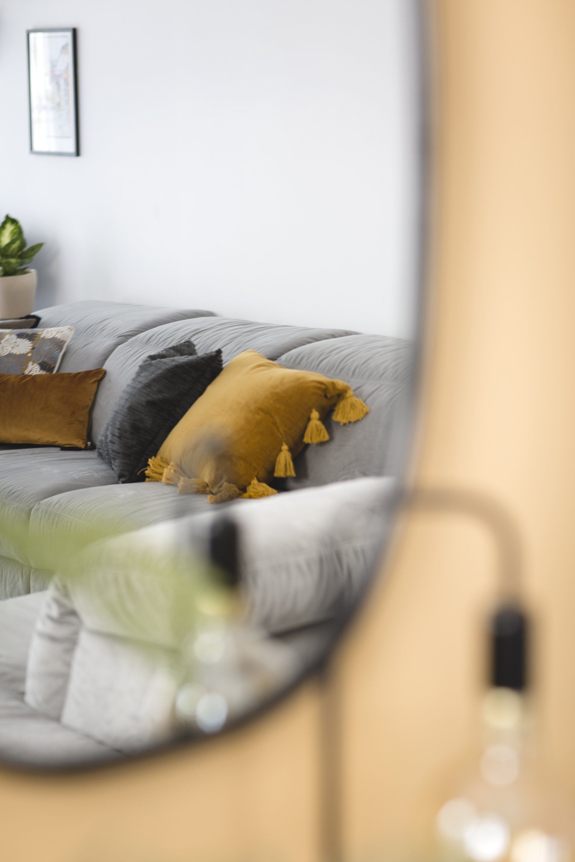 בעלי הדירה אוהבים צבעים מאופקים כמו שחור ואפור והמטרה הייתה הכנסת נוכחות של צבע נוסף על מנת שהחלל לא ירגיש קר. חיפשנו גוונים שבעלי הדירה מתחברים אליהם והגענו לגוון החרדל. הכנסנו את הגוון בריהוט משלים, אקססוריז וכצבע לקירות.