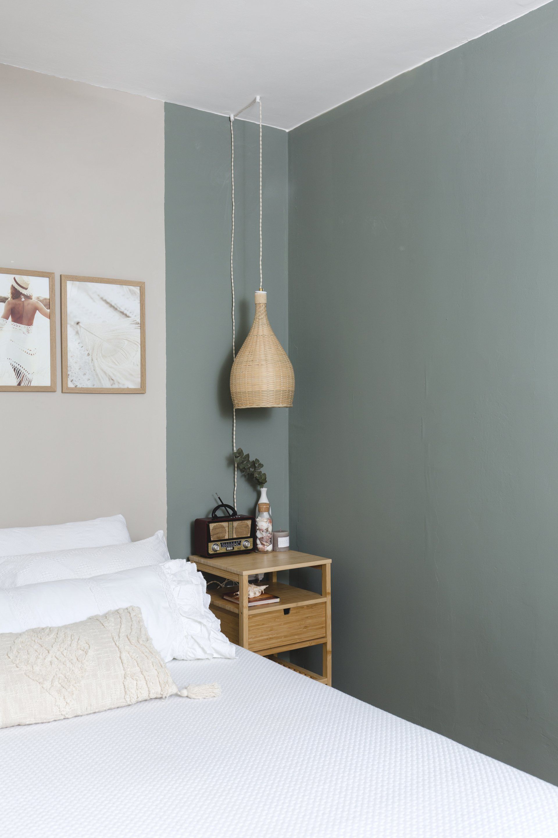 השילוב בין בז לירוק אפור גורם לחדר להראות נעים ומזמין,
