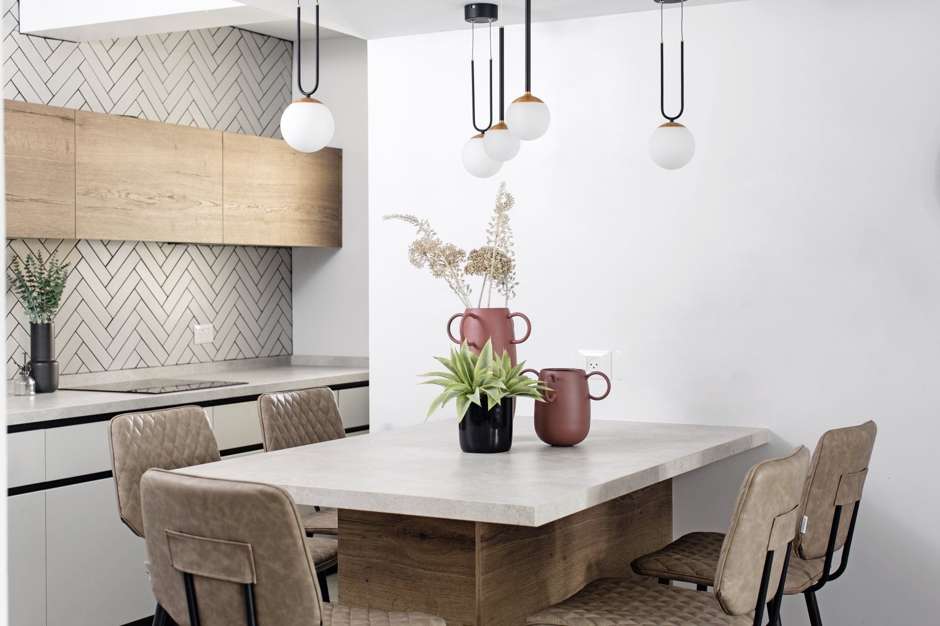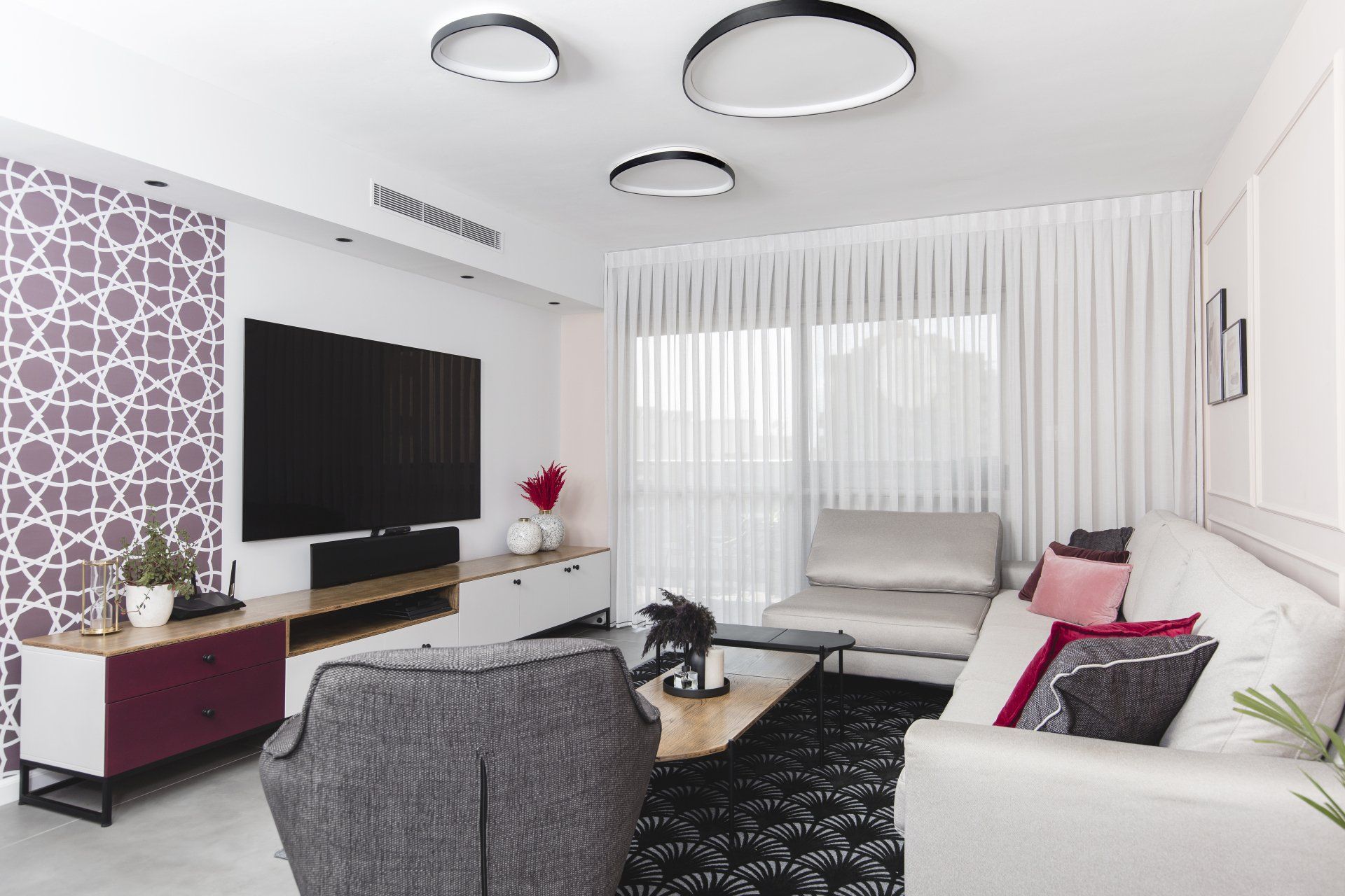 לדיירי הבית באיזור זה היה חשוב לקבל חלל מרווח ומואר, חלל אלגנטי וחמים. שמתי דגש על חמימות החלל, נמנעתי מתחושת קרירות מוזיאלית. בחרתי בגוונים חמים של אפור בריהוט כמו הספה וכסאות הבר ויחד איתם שילבתי אלמנטים שחורים המקנים תחושה של חלל יוקרתי.