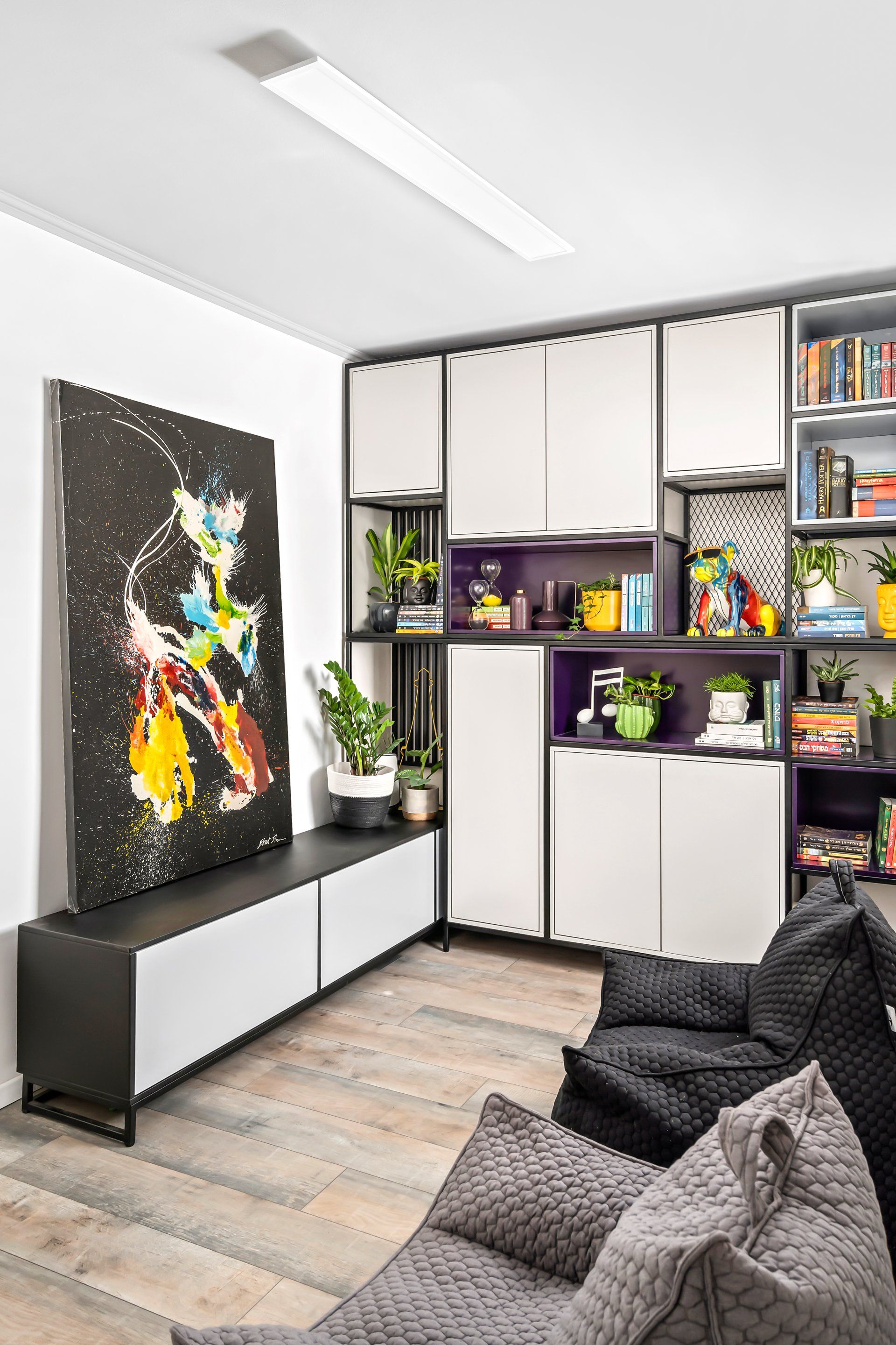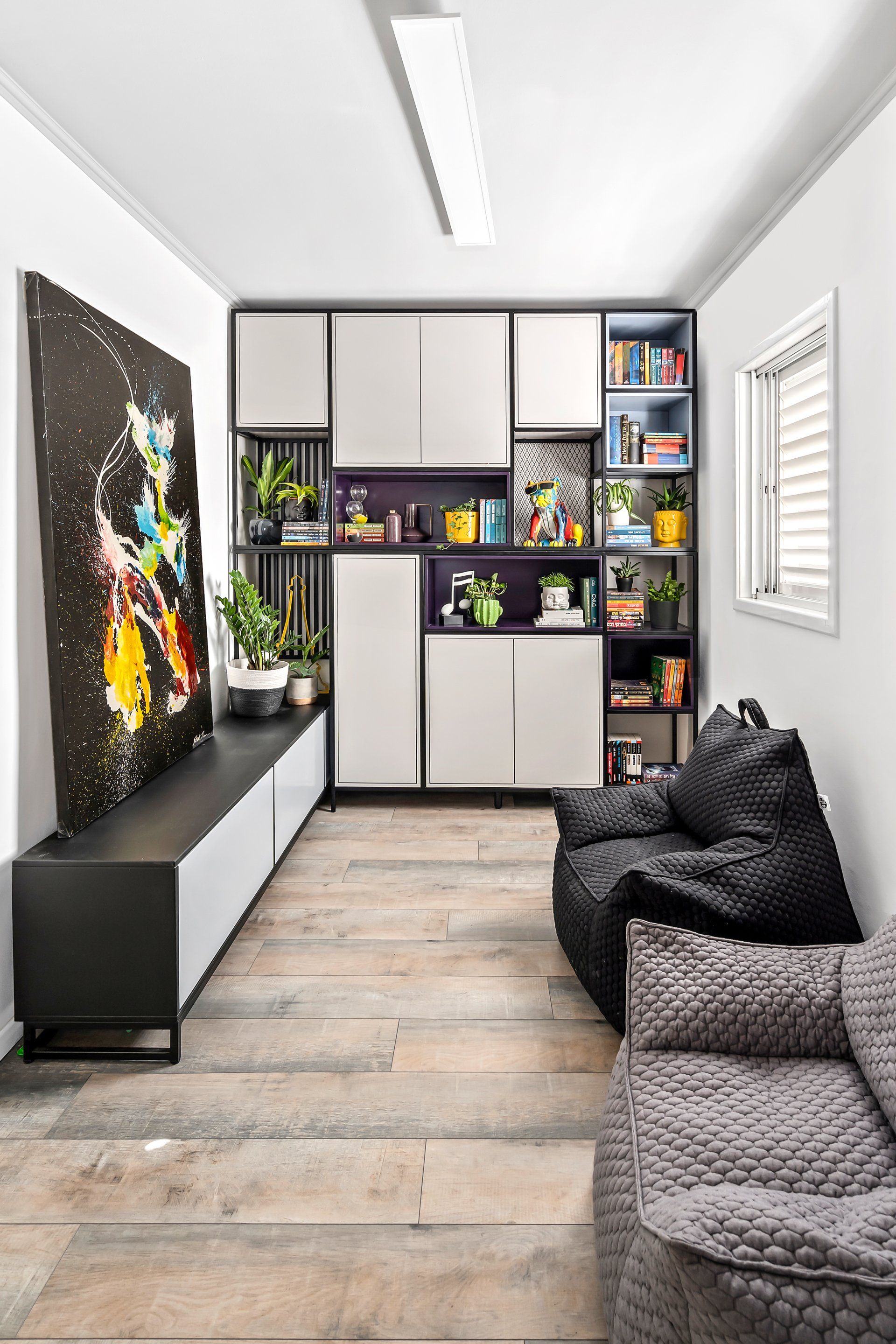החלטנו ותכננו ארון גדול שיהיה פרקטי, יפה ומעוצב. הארון אחסן בתוכו מגוון גדול של ספרים ומשחקי קופסא ונראותו מוסיפה ומשדרגת את החלל.