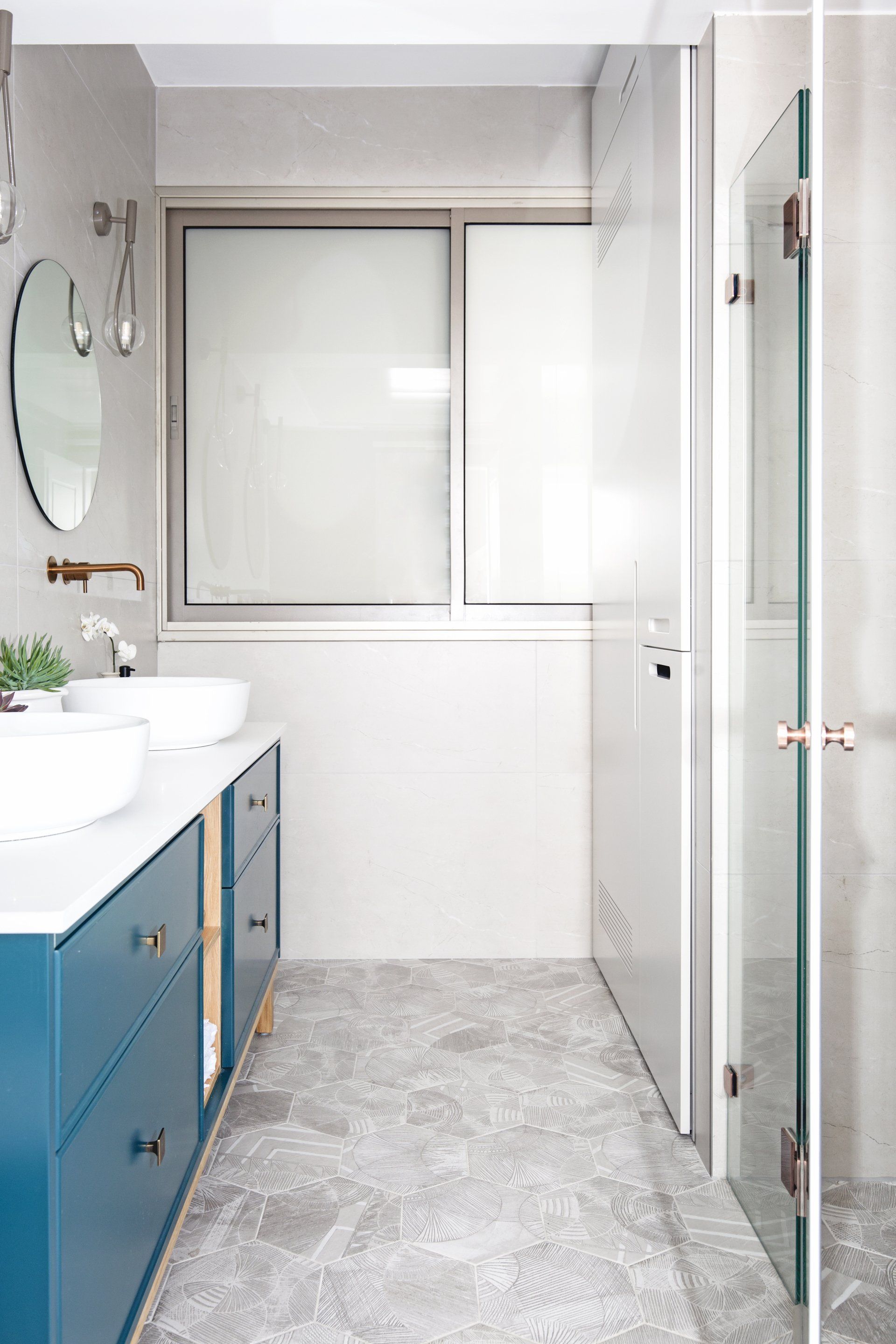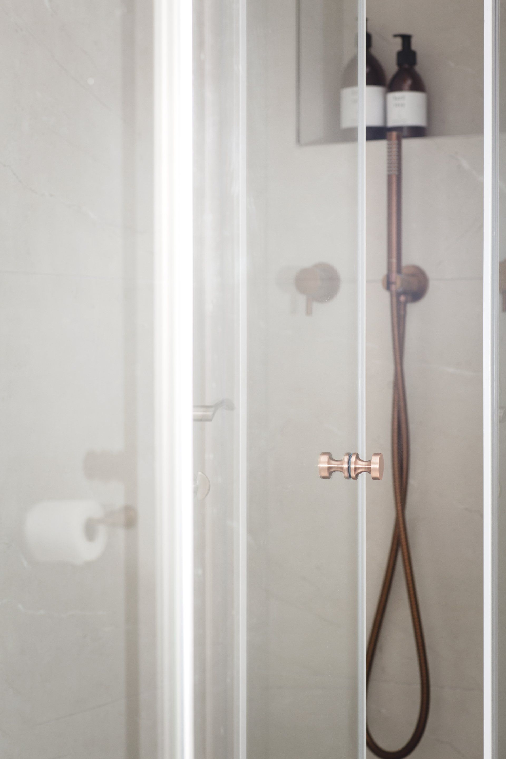 זו המקלחת השניייה ששודרגה במסגרת שיפוץ חדרי הרחצה בבית. בחלל זה שברנו את הקיר שהיה בין מרפסת השירות לבין המקלחת על מנת לקבל חלל אחד גדול ומרווח.