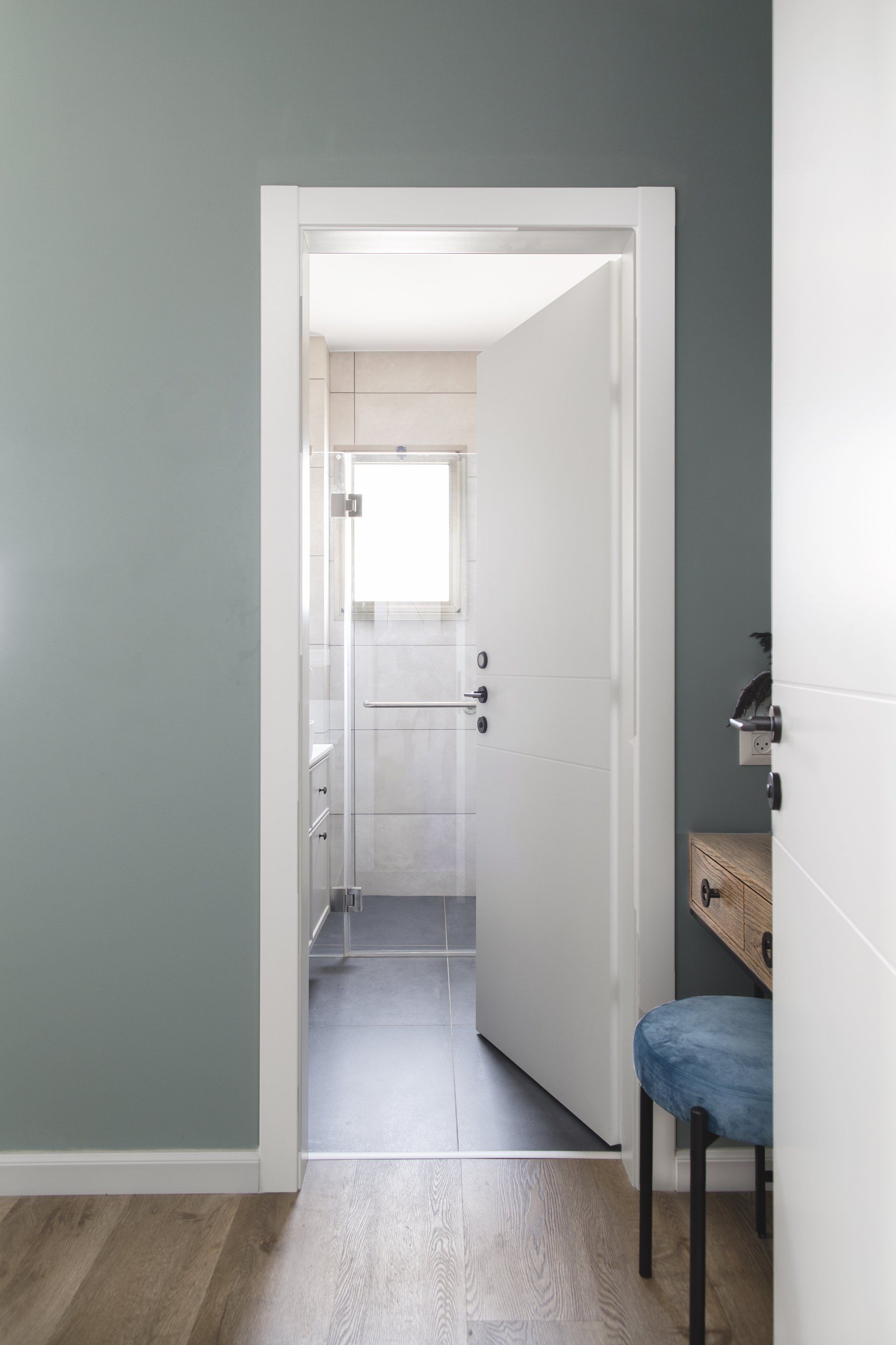בתוך חדר הורים היה שטח רב לא מנוצל, מה שנקרא ״שטח מת של מעברים״. שברנו לגמרי את חדר הרחצה ותכננתי אותו מחדש. הגדלנו אותו, התקנו במקום מקלחון פינתי של 80*80 ס״מ, מקלחת חזית מפנקת עם ספסל ישיבה בפנים.