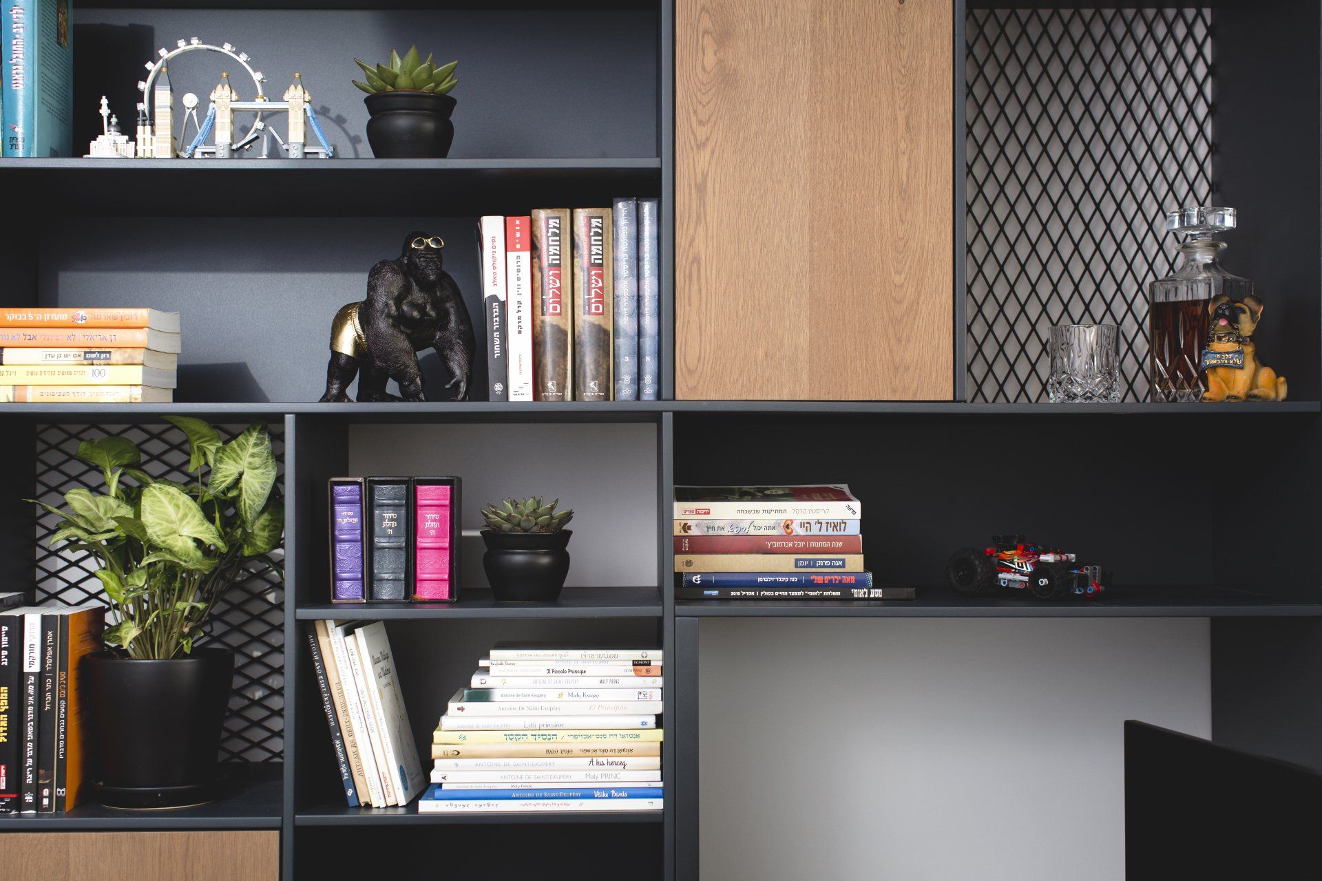 על מנת שהמעבר יהפוך לנוח תכננו את החדר בצורה שישלב בתוכו מספר מטרות; פינת אירוח, פינת עבודה נוחה ומרווחת עם מגוון מקומות אחסון, אחסון לספרים ששייכים לבעלי הבית ופינת מוזיקה.